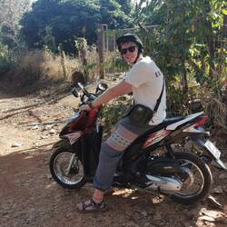 We had a bit of a bike tour stopping at a few points our resort guy recommended. It was about 1 1/2 hr drive through the jungle and fields, was literally so relaxing music on cruising around in the sun. No traffic about, apart from the odd farm vehicle. We stopped at the top of a dam and then headed to our last point which was a sacred waterfall and cave which has a permanent monk residing and meditating there. It was very cool to see and a beautiful area you can see how they meditate here, so tranquil. It was funny as a sign saying "be quiet as Monks meditating" yet he was blasting a petrol leaf blower. 😂. Really cool temple and was an adventure to get there on the moped. Top marks all round for today. We headed back then to watch Kalata Graduate her masters on the laptop. It was cool to set this up and watch from the other side of the world. Well done Larty!!! Dinner at restaurant ready to head back to Chiang Mai tomorrow for the Samoeng Motorbike Loop 💪 😁