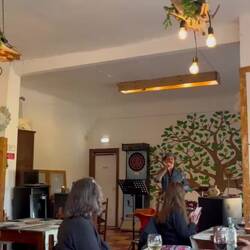 An easy walk, a quick stop along the way for a snack. Wonderful accommodations, a delicious stew for lunch. Running into our amigo José at our Hostel. A hot shower, nap and now a lovely dinner withRead more