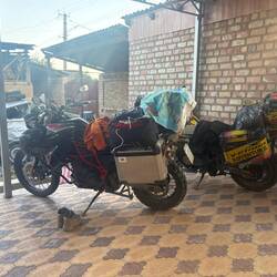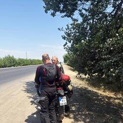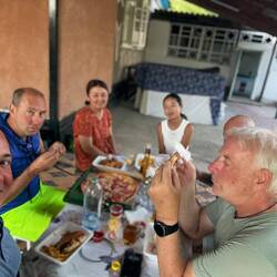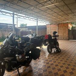 Heute ging es ganz entspannt von Osch Richtung Bischkek. Auf halber Strecke in einem sehr netten Gästehaus untergekommen. Hier zwei Koreaner getroffen, 62 Jahre und 65 Jahre, die von Korea bisLæs mere