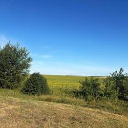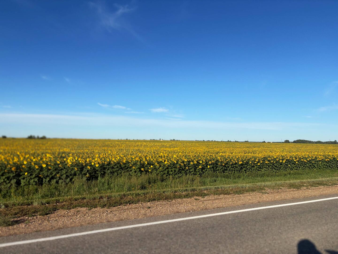 Endlose Sonnenblumenfelder, fast über eine Länge von 150 km, soweit das Auge reicht. Mittags am Fluss sehrBaca lagi