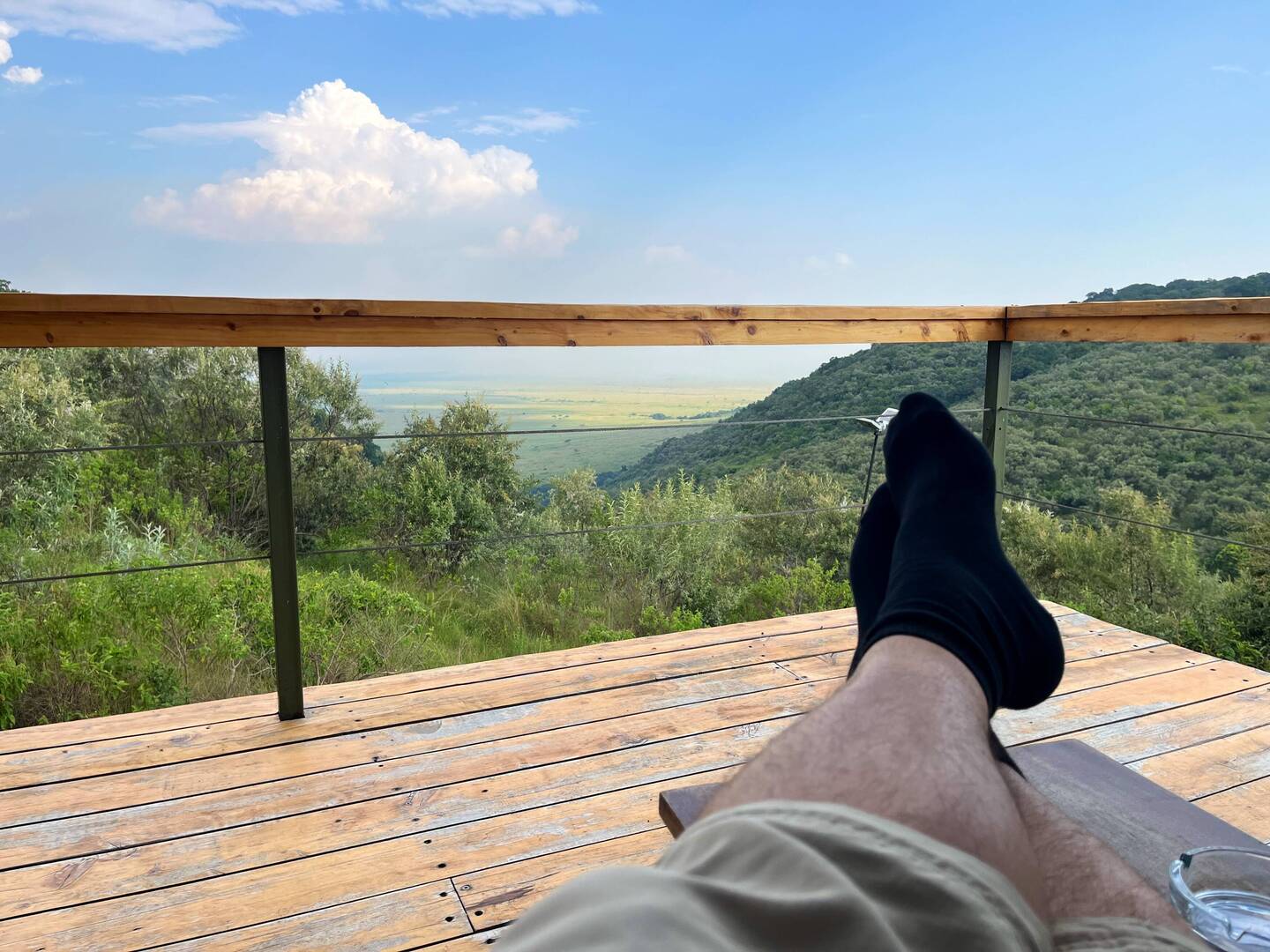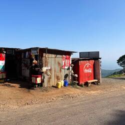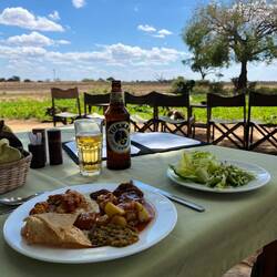 Nach 7 Stunden Fahrt auf echt afrikanischen Straßen, haben wir unsere erste Lodge endlich erreicht. Der Ausblick hier ist sagenhaft und das Mittagessen sensationell.