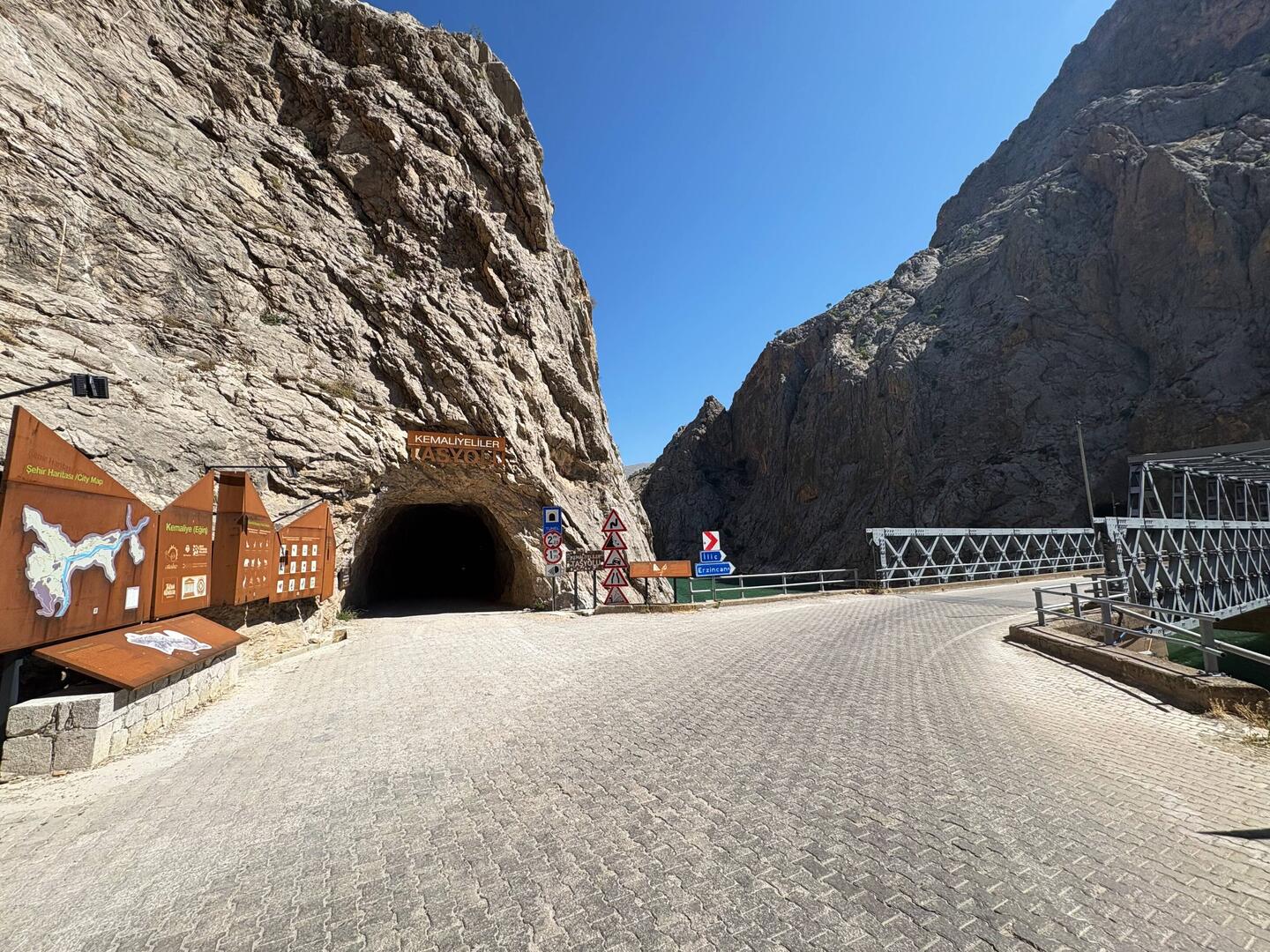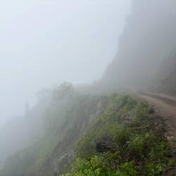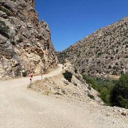 9 km Schotterpiste, 38 Tunnel in einer bis zu 450 m hohen Schlucht.
