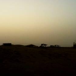 Kurz vor unserem Ziel heißt es nun per Kamel das Endstück durch die "Wüste" zu überwinden. (Wer hier hiesige Dünen erwartet wird enttäuscht.) Die Reise auf einem Kamel ist zudem unerwartetLeer más