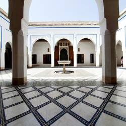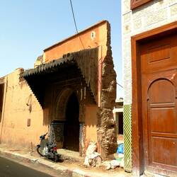 Per Taxi sind wir auf nach Marrakesch in das treibende Getümmel. Als ersten Punkt haben wir das Bab Agnor Tor und die nahe gelegene Moschee anvisiert und begutachtet. Bereits in den ersten GassenLeer más
