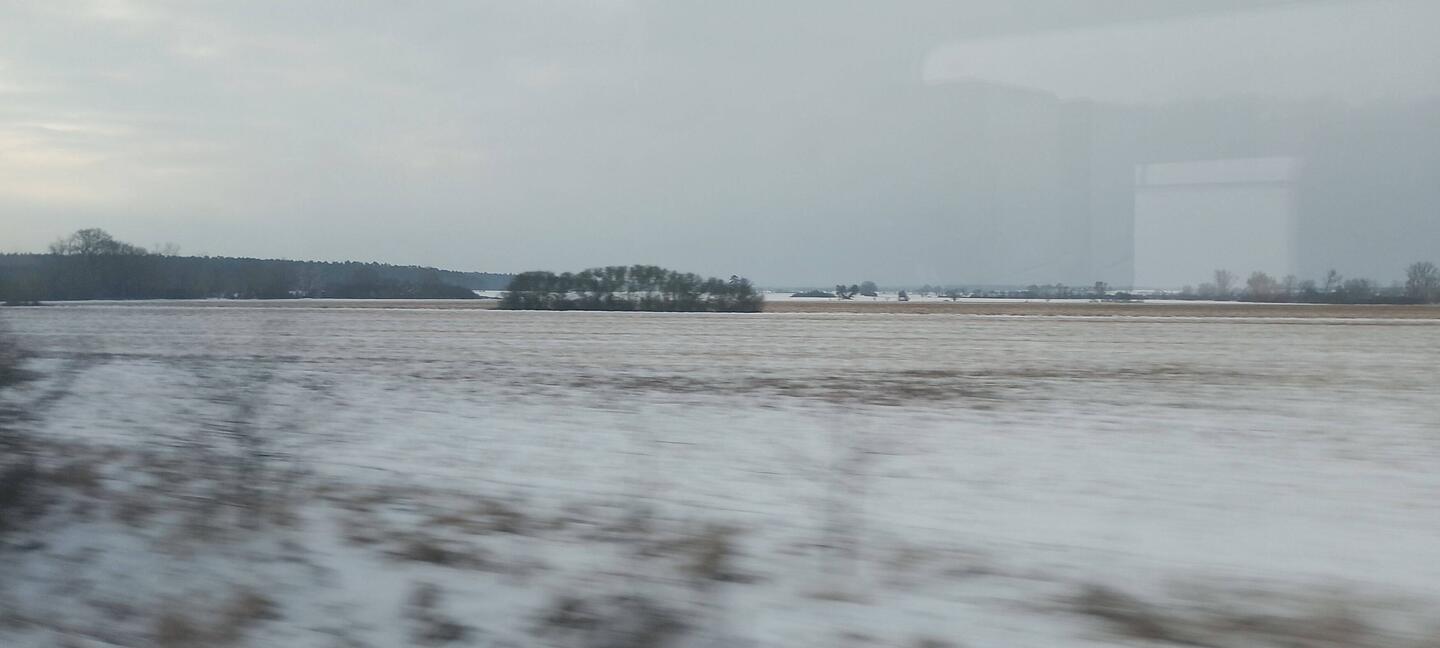 Musste über Berlin zurück fliegen, die anderen Flüge waren alle zu voll für Standby. Das heißt aber auch ich muss mit der Bahn nach Hamburg. Ist aber ein ganz nettes Winterpanorama. Und im ZugLæs mere