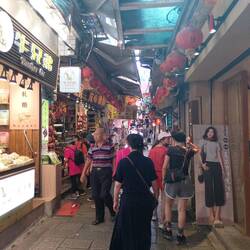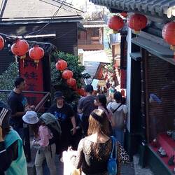 Jiufen ist ein altes Goldgräberstädtchen am Hang gelegen mit tollem Ausblick aufs Meer. Es ist berühmt für seine Telehäuser, also empfehlen alle, eine Teezeremonie mit Aussicht zu machen. Na gutLes mer