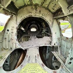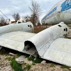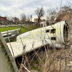 An der Landstraße M2 in Gornoe steht der Rumpf einer alten IL -18 , die Flügel, Höhen-und Seitenruder und das Fahrwerk sind abgebaut, aber gleich in der Nähe gelagert.