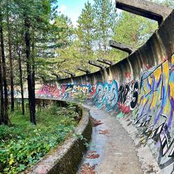 Die Bobbahn von den olympischen Winterspielen in Sarahevi wurde nie mehr genutzt, sondern dem Verfall preisgegeben.