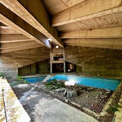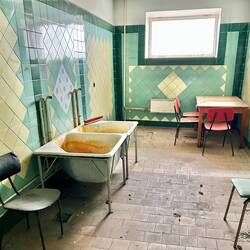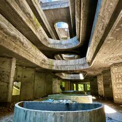 Auf dem Messegelände von Chisinau ist ein freizugänglicher Lost Place, der Pavillon Nr.8. Hervorzuheben sind das Ornament über dem Eingang und der Überrest des Mosaikspringbrunnens.
