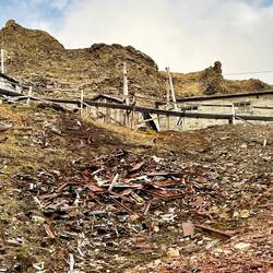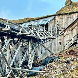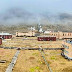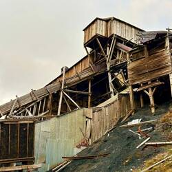 Noch im Stadtgebiet von Longyearbyen, oben an einem Berghang liegt die z.T. sehr baufällige Ruine der Steinkohlenmine 2B. Diese Mine wurde von 1937 bis 1968 betrieben. Einige der Holzpfeiler bzw.Baca lagi
