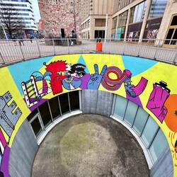 Die Street Art in Bangladesh wird dominiert vom politischem Graffiti der Studentenrevolution 2024. In fast allen Städten, egal ob groß oder klein, finde sich lange Wände entlang der Hauptstraßen,Læs mere
