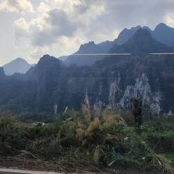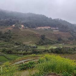 9 am bus ride from SaPa to Dien Bien Phu. Up and over wooded mountains in the mist.