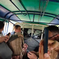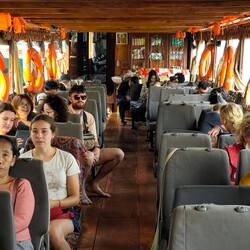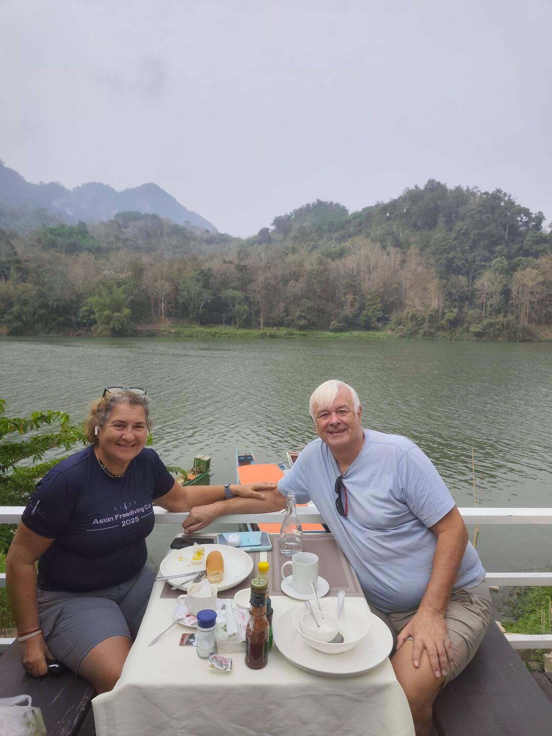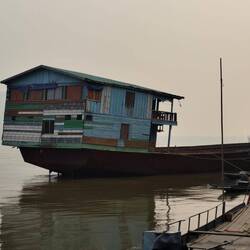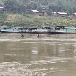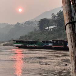 Up at 05:30 to watch the monks processing through town receiving alms. Then a van ride to the slow boat to take us 6 hours up the Mekong river to Pak Beng.