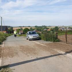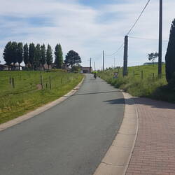 Weer op pad komen we heel snel een bord tegen met 'koffie', dat willen we. Ook hebben ze heerlijk gebak. Tijdens de koffie vertel ik dat we vlak bij de Belgische grens moeten zijn. Dan kijk ik goed om Czytaj więcej