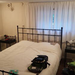 Hier staat een heerlijk bed en eigen sanitair tot onze beschikking en worden we onthaald met koffie en een uitgebreid gesprek. Nu zo lekker slapen en morgen weer vroeg op. Trusten xxx