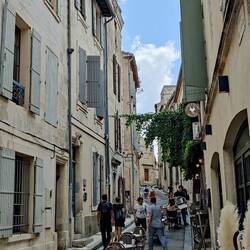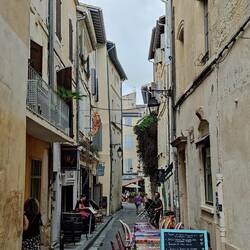 Verwachte onweer is vannacht niet gekomen. Tijd voor de was, ontbijtje en dan bij de koffie bepalen wat de volgende camping wordt. Dan op de fiets naar Arles om een rondje te lopen.