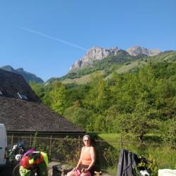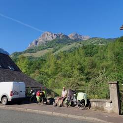 Morgen in 30 km fietsen naar de Spaanse Grens bij Col du Somport. 1.100 meter hoger dan waar we nu zijn. De foto zegt alles ... Dusss, spullen klaarleggen, koppie thee, vroeg slapen dan gaaaan.