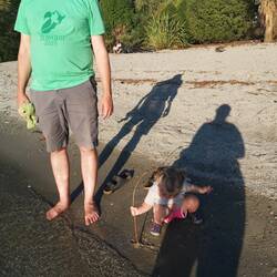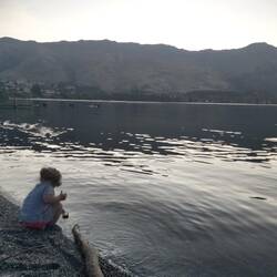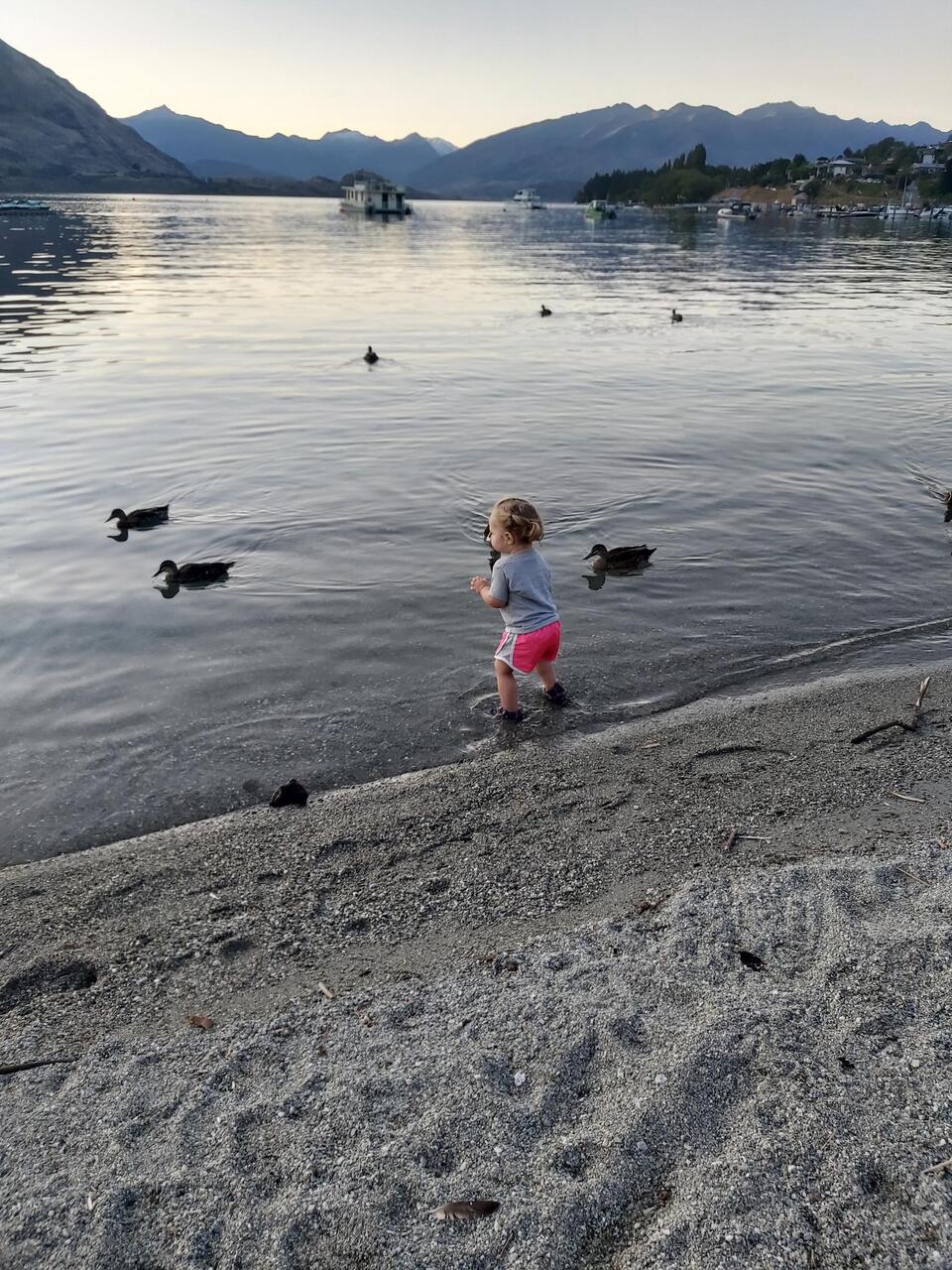 After our dinner we went down to Wanaka Beach - including the famed Dinosaur playground and their sweet little main st of shops. It was sunset and there was a breeze and it was just a delightful place to spend time. There were tons of birds and stones on the beach so Florence was happy and she started getting more and more interested in walking in the water. She also got bit by a duck when she tried to feed it a stone. She was not fazed.Baca lagi