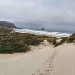 The path to the lookout walked right through farm fields with sheep beside us. From the lookout we could see seals on the beach so we ventured down. It was a "less maintained" trail that definitely put us through our paces - but worth it. We had the chance to see tons of sea lions and Jason and Florence befriended the conservation officer (from Hamilton Ontario). The sea lions seemed to be in pairs, one big with one small but we have no idea of the significance of that observation.