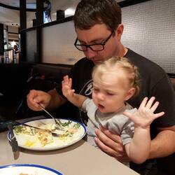 The famed Fleurs Place in Moeraki. We had actually never heard of it before this morning when the NZ/Swede couple advised us it is a great meal. We called to book in and were given a table as long as we could show up by 5 and be gone by 6:20. It was the best seafood of my life. Spaghetti a la vongole was filled with huge clams, almost the size of mussels, in shells still. Jason's fish was so good even I liked it. Florence even ate some of her spaghetti.もっと詳しく