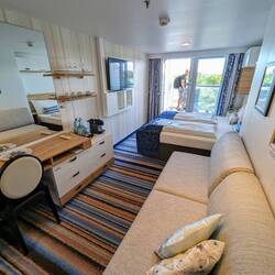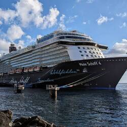 Nach einer kurzen Fahrt mit dem Taxi vom Hilton Hotel, sind wir auf der mein Schiff 4 angekommen.