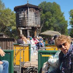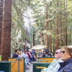 The next day, following a restful night, we took the coach to the hills of Santa Cruz, arriving at Roaring Camp, where we enjoyed the awesome big trees, little shop, and old town Western feel.