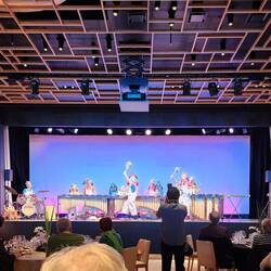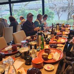 We had our final Okura Hotel breakfast buffet today, got our luggage out for the porters, and met downstairs for a coach to a fabulous venue - Happo-en - for a wonderful lunch which was to be accompanied by 20 children, together playing xylophones and drums meant to launch us with excitement and enthusiasm into our embarkation on the Silver Dawn, (it worked!).Læs mere