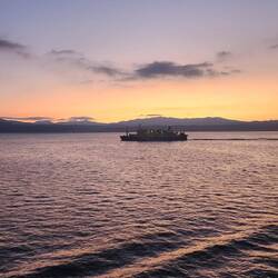 As we exited the Tokyo harbor, we had a great view of Mount Fuji from the Pacific Ocean. Good luck for the rest of the year!