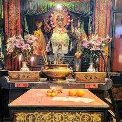We took another 9am, four-hour tour, "Glimpse of Hong Kong:" we revisited the Peak Mountain, and walked through the Tin Hau Buddhist Temple and adjoining buildings (1865), Wet Fish Market, and the Yau Ma Tei Jade Hawker Bazaar.