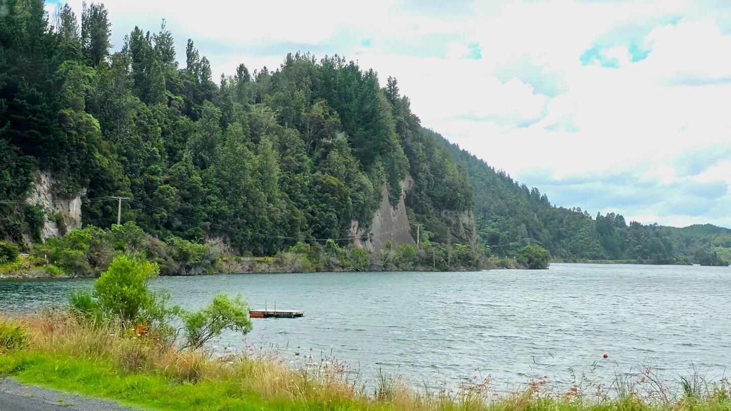 Après notre survol de White Island, nous partons pour Rotorua où nous avons rendez-vous demain pour notre problème de batterie. Nous empruntons la Hwy30 qui longe les lacs Rotoma, Rotoheu, Okataina et la Caldera de Rotorua.