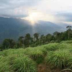 Tag 3 unserer Dschungeltour. Das Ziel für heute war die Spitze des Nationalparks. Der Tag begann recht gemächlich am Fluss. Nachdem alles eingepackt war und wir uns angezogen hatten querten wir den Fluss und begannen den Anstieg. Geplant waren ca. 3h und so lange haben wir in etwa auch gebraucht. Es war anstrengend, nein es war sogar mega anstrengend. Wir legten ca. 800Höhenmeter im Dschungel zurück auf rutschigem Untergrund, unebenheiten und bei 30°C. Ich weiß gar nicht wann ich das letzte mal so geschwitzt habe, geschweige denn ob ich überhaupt schon mal so geschwitzt habe. Unsere Wanderung führte uns zuerst durch den dichtesten Regenwald und dann ging es noch durch schier undurchdringliches Gestrüpp. Gegen Ende plagte unsere Gruppe auch noch ein leichter Wassermangel, also langweilig war uns nicht. Als wir dann gegen 13 Uhr oben auf dem Berg waren entlohnte uns ein atemberaubender Ausblick. Den konnten wir zunächst nicht genießen, da wir zeitweise total erschöpft waren. Als wir uns dann aber erholt hatten konnten wir nach und nach die Aussicht genießen und den Nachmittag entspannt verbringen.
