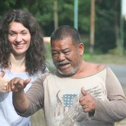 Gegen halb eins wurden wir dann von einem Becak zur Fähre gebracht. Von dort aus ging es nach Banda Aceh. Dort holte uns ein Local Driver ab. Dieser brachte uns noch zu einer Sehenswürdigkeit die der Tsunami mit sich brachte. Ein Boot welches auf einem Haus steht. Danach ging es ins Internetcafe, da die Kreditkarte Schwierigkeiten machte. Nach einem Telefonat mit der Bank hatte ich eine Stunde um Geld abzuheben, danach wurde meine Karte vorübergehend wieder gesperrt. Naja. Wir wurden dann aber glücklicherweise direkt von unserem Bus abgeholt der uns nach Ketambe, also in den Dschungel, bringen sollte. Zu Beginn waren wir nur zu zweit mit den Fahrern. Diese sagten wir wären nur zu viert in einem Elferbus für die Tour. Eine gewisse Freude machte sich breit. Wie lange wir fahren, es weiß anscheinend niemand genau. Naja aus vier Leuten in dem Elferbus wurden irgendwann dreizehn und somit konnte die tolle Reise beginnen.