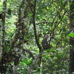 Der gestrige Abend endete übrigens am Lagerfeuer. Wir saßen dort gemeinsam und unterhielten uns über diverse Möglichkeiten der Weiterentwicklung von Ketambe. Die Nacht war soweit ganz okay. Der Untergrund war zwar sehr hart, aber der anstrengende Tag tat sein übriges und somit war es doch recht gut auszuhalten. Der Morgen begann recht abrupt mit einem Angriff einer Affenhorde auf unser Camp. Der Lärm war kaum zu überhören und somit war die Nacht gegen sieben vorbei.