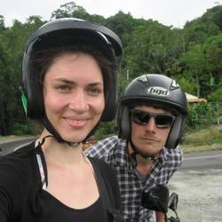 Heute morgen machten wir uns auf den Weg nach Pulau Weh. Wir aßen Frühstück und nahmen dann ein Tuk-Tuk zum Hafen. Dort kauften wir uns ein Ticket für die Express-Fähre, welche uns in weniger als einer Stunde direkt auf die Insel brachte. Da wir an der Fähre einen netten, womöglich auch aufdringlichen Indoneser trafen war die Abholung für uns durch seinen Bruder schon organisiert. Als wir am Lumba Lumba Dive Center eintrafen wurden uns die wichtigsten Regeln zur Organisation der Tauchgänge erklärt. Ich startete gleich am Nachmittag mit einen beeindruckendem Tauchgang. 36m tiefe, Rochen, Riffhaie und eine unglaublich große Variation an großen und bunten Fischen. Das ganze bei 28°C Wassertemperatur, echt beeindruckend. Unsere Unterkunft hier besteht aus einem Zimmer mit Bad, Balkon und Hängematte, also vollkommen ausreichend. Das einzige was ein bisschen anstrengend ist, ist die Hitze und die Wartezeit am anliegendem Restaurant, indem es durchaus bis zu einer Stunde dauert bis das Essen geliefert wird... Und eines darf man hier nicht unterschlagen. Unseren Ronny, ein Gecko biblischen Ausmaßes, welcher mindestens 20mal größer als all seine Mit-Geckos ist. Wir dürfen also gespannt sein wer hier die Oberhand behält, entweder Ronny oder doch wir. Man darf gespannt sein.Read more