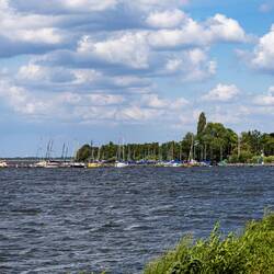 Zwischen Poggenhagen und Steinhude wandern wir am Fliegerhorst Wunstorf entlang. Immer wieder hören wir im Wald Maschinengewehre. Etwas beklommene Stimmung. Steinhude ist nicht mehr weit. Im Supermarkt holen wir uns noch Gemüse und Obst. Wenig später erreichen wir den See. Zeit für eine ausgiebige Pause mit Fischbrötchen und Eis. Durch die Nähe zum Fliegerhorst ist am Himmel einiges los. Immer wieder fliegt ein A400 begleitet von 4 Jets.