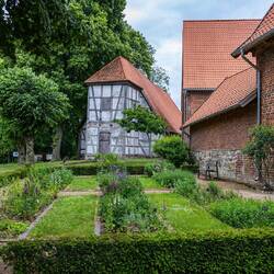 Ich öffne das Fenster meines Pilgerzimmers. Mir kommt eine kühle Luft entgegen, das Gewitter hat der Luft gut getan. Über den Klostergarten verlasse ich das Gelände. Bald habe ich Stadtoldendorf erreicht, ein kleines Städtchen mit schönen Fachwerkhäusern. Sonst ist nicht viel zu sehen.