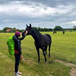 Durch den Klosterforst geht es schnurstracks an die Weser. Immer wieder beginnt es zu tröpfeln, es bleibt aber trocken. An einer Weide stellt sich Hang als Pferdeflüsterin heraus, ein Pferd kommt extra zum Zaun, um uns zu begrüßen. Um durch Schlüsselburg zu kommen, müssen wir diese zwei Mal überqueren. Kurz vor Stolzenau kommen wir dann an einem See vorbei, in dem noch Sand gefördert wird. Über ein ewiges Förderband wird dieser abtransportiert. In Stolzenau bekommen wir dann endlich den lang ersehnten Kaffee und ich verschlinge gleich noch ein paar Brötchen. 🤷♂️ Wenige Kilometer später erreichen wir den kleinen Ort Schinna, wo wir heute Abend ein kleines lecker klingendes Menü serviert bekommen. Am Kloster wurden wir von einem Storchenpaar begrüßt, die uns von ihrem hohen Sitz aufmerksam beobachtet haben.Read more