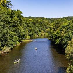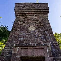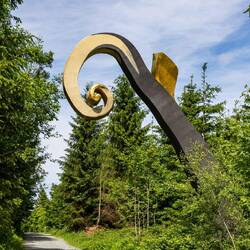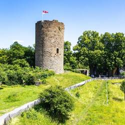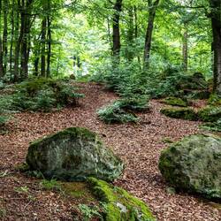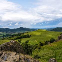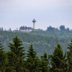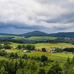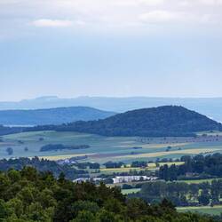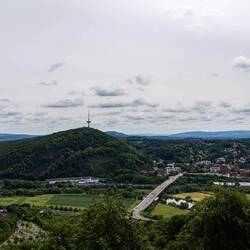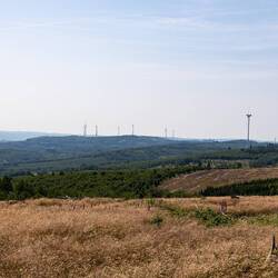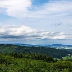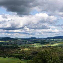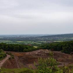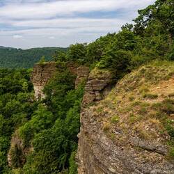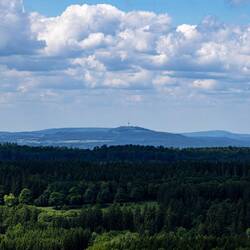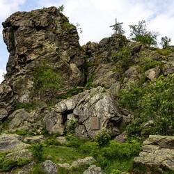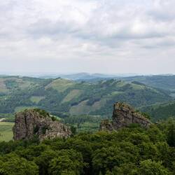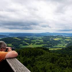 Rund um den historischen Basaltsteinbruch kann man einiges Wissenswertes über den Basaltabbau lernen. Wenig später auf dem Weg zum Hedwigturm sehe ich im Wildpark doch endlich ein Wisent, leider kein freies. Vom Turm selbst genieße ich das herrliche Panorama. Danach dreht der Weg eine kleine Runde über die Wolfensteine, schöne vom Wald umgebene Felsformationen.