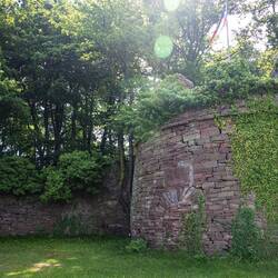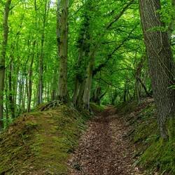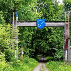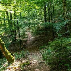 Der Aufstieg geht noch. Aber dann beginnt der Spaß: der Weg führt rundherum um Herchen. Und das ähnlich zu dem Weltende-Pfad gestern. Immer auf und ab und schön auf die Muskeln. Kurz vor Verlassen von Herchen besuche ich den Thingplatz, auf dem früher im Nationalsozialismus Veranstaltungen gehalten wurden.