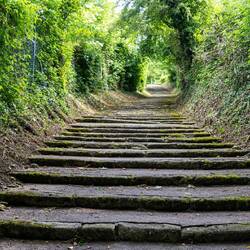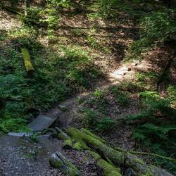 Oberhalb von Herschen verlasse ich kurz den Natursteig, um durchs Tal auf die andere Seite von Herschen zu gelangen. Beim steilen Abstieg über zahlreiche Treppen wird mir Angst und Bange. Wenn das auf der anderen Seite genauso steil wieder hoch geht, dann habe ich meinen Spaß. 🙈