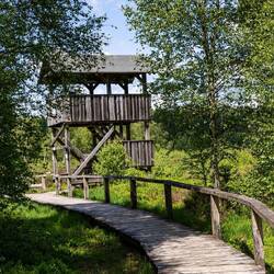 Entgegen der Wettervorhersage sahen wir heute Morgen durch das Fenster blaue Himmel. Es sollte ein guter Wandertag werden. Nach einem guten Frühstück im Garten brechen wir auf. Wir entdecken heute nicht nur Rehe, sondern sehen auch 2 Füchse. 🦊 Die ersten Kiometer verlaufen entlang der Moore.