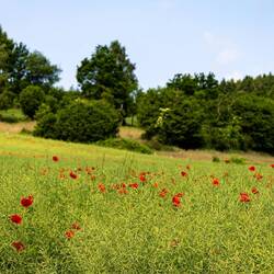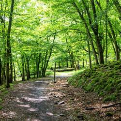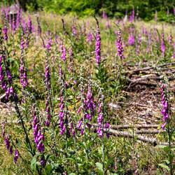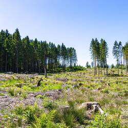 Kurz nach Westerburg habe ich gleich wieder ein Reh mit zwei Kitzen gesehen, doch leider waren sie zu schnell. Wenig später hole ich einen Mann mit seinem Hund ein, wir kommen ins Gespräch und ich freue mich, endlich mit den meisten Menschen Dialekt babbeln, äh reden, zu können. Immer wenn ich an Wiederaufforstungen vorbei gehe, schaue ich ganz neugierig, was da so gepflanzt ist. Die meisten sehen hier sehr durchmischt aus, das freut mich.