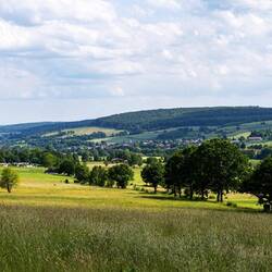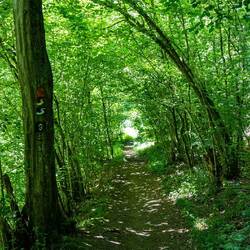 In Dillenburg befindet sich das hessische Landgestüt. Heute ist es die zentrale Vorbereitungs- und Prüfungsstätte für den Beruf „Pferdewirt“ in Hessen, Rheinland-Pfalz und dem Saarland. Wieder was gelernt. Von Dillenburg nach Herborn wechsle ich auf den Lahn-Dill-Bergland-Pfad. Meist verläuft er durch hübschen Wald, bietet aber immer wieder schöne Aussichten. Als ich mich nach Niederscheld den Berg hoch kämpfe, treffe ich drei Personen, die gerade eine nicht endemische Pflanze händisch entfernen. Und da ist er wieder der Moment: „Wohin soll es gehen?“ „Nach Oberstdorf“ Scheinbar gibt es hier nen Ort, der auch so heißt. „Ne Rundtour?“ - „Nein, Oberstdorf im Süden.“ Wieder werde ich Botschafter für den Nord-Süd-Trail. Was mich freut: so langsam komme ich sprachlich in heimatliche Regionen.