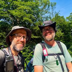 Ihr werdet nicht glauben, was mir an der Dill-Quelle passiert ist! Ich nähere mich der Hütte immer mehr, ein Wanderer hat dort seine Klamotten zum Trocknen aufgehängt. Ich erreiche die Hütte und wer sitzt da? Robert, den ich auf dem Heidschnuckenweg immer wieder getroffen habe. 😊 Vielleicht erinnert ihr euch dran. Seine Frau ist auf einem Retreat und er wollte ne Woche wandern. Schön, ihn so unerwartet wieder zu sehen. 🥰