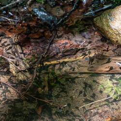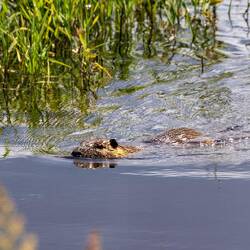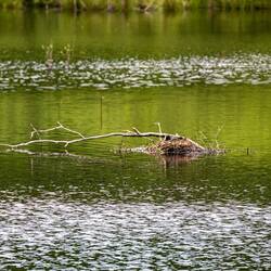 Bei Freilingen ist der Saynbach von Bibern zu einem See aufgestaut. Ich wollte gerad ein Bild vom See machen, da sehe ich etwas braunes im Wasser. Anstatt dass es weg schwimmt, bewegt es sich fast schnurstracks auf mich zu, ein Biber! 🦫 So ein Glück, ich war richtig happy! In unmittelbarer Umgebung am Waldrand ist scheinbar ein privater kleiner Tierpark, ich entdecke Pfauen, Wildschwein und Kängurus 🦘.