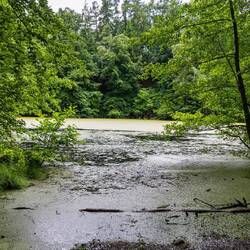 Bevor ich die Westerwälder Seenplatte erreiche, komme ich an Kilometer 1.700 vorbei. Die Seenplatte umfasst 7 Seen, die sich im Viereck Hachenburg, Westerburg, Montabaur und Dierdorf befinden. Heute komme ich direkt am Postweiher und Dreifelder Weiher vorbei. In der Ferne sehe ich zahlreiche Schwimmvögel.