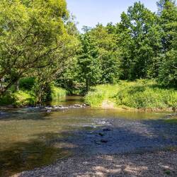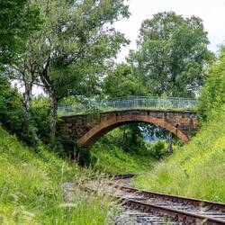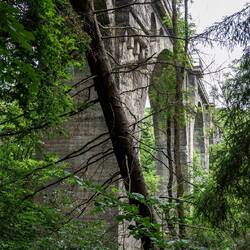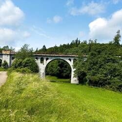 Oberhalb von Enspel kann man ein ehemaliges Basalt-Werk besichtigen. Ich selbst schaue es mir nur von außen an. Danach nehme ich Kurs aufs heutige Ziel, Bad Marienberg. Ich freue mich schon, die Nistertalbrücke bei Erbach zu entdecken. Leider kann man vom Wanderweg aus kaum noch was sehen. 🥹 Aber zumindest lässt mich der Weg frohlocken. Das letzte Stück führt er zuerst an der Großen Nister und später an der Schwarzen Nister entlang.