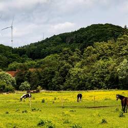 Von weitem kommt ein Reiter auf mich zu. Doch der Weg zweigt ab, bevor wir uns treffen. Aber der Reiter biegt auch auf meinen Pfad ab. Als ich ihn vorbei lasse, verlangsamt er sein Reittempo und wir kommen ins Gespräch. Aktuell sind seine Frau und er noch wegen dem Pferd gebunden. Wenn er ihr von dem Trail erzählt, dann möchte sie diesen auch irgendwann gehen. Am Ende führt er das Pferd neben mir her und wir quatschen noch ne Weile. Vor Stangenrod trennen sich unsere Wege.