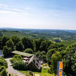 Nach der Abtei Marienstatt gestern komme ich heute gleich am Kloster Marienthal vorbei. Der Kreuzweg direkt dahinter ist sehr aufwendig gestaltet. Wenig später komme ich auf den Beulkopf, auf dessen Spitze sich der Raiffeisen-Turm in den Himmel reckt. Das Panorama ist umwerfend.