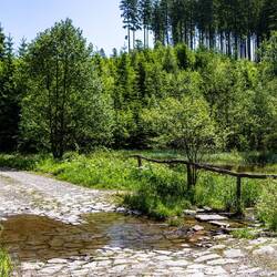 Es geht wie gewohnt hoch und runter. Ich höre mal wieder einen Podcast über die Via Transilvanica. Je mehr ich darüber erfahre, desto mehr reizt sie mich für das nächste Wanderabenteuer. So langsam geht mein Wasser zur Neige. Da kommt die Jägerquelle genau richtig. Zwei Liter trinke ich direkt, schön kühl, das tut gut.